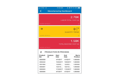 KPI information you can monitor with Acumatica manufacturing automation