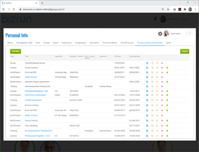 With BizRun, you’ll never be more than a few clicks away from every employee’s important documents. BizRun gives you a place to store all that employee-related data that may not be in Acumata: employment history, compensation history, onboarding documents, training and certifications. And employees can actually fill out forms in BizRun like I-9s and W-4s, and have that data sync to Acumatica.