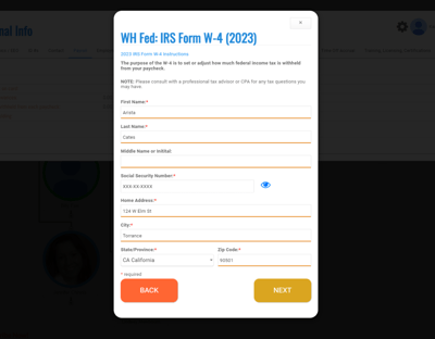 Employee self-service update of payroll data in BizRun. Direct deposit, federal & state withholding, contact information.