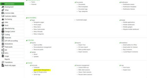 STEP 1 - To enable this search box, you need to go to the administration module and locate the Search Index Management function under usage.