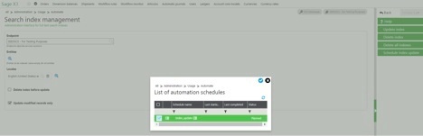 STEP 7 - Open the Search Index Management function and choose to schedule an index update; then, select the index update scheduler you created: