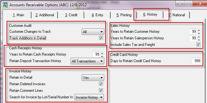 You have the ability to retain Cash Receipts, Invoice, Sales, and Credit Card (PCI compliant, of course) history. ASI recommends entering “99” – “999” for years or days to retain, this essentially allows the system to keep all history. In addition, ASI always recommends turning on Audit tracking. This allows you to run the audit report to see who made changes and when those changes were made. This can be especially nice for those companies looking to become compliant with Sarbanes Oxley or looking to beef up their internal control processes.