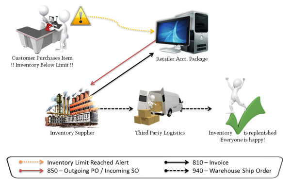 The EDI software will verify if the data is accurate and meaningful and will calculate a re-order point for each item based on the data and minimum stock levels agreed between buyer and supplier.