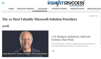 For that reason, everyone at CAL Business Solutions is truly honored to have been included in the December issue of Insights Success Magazine among the ‘10 Most Valuable Microsoft Solution Providers of 2018.’
