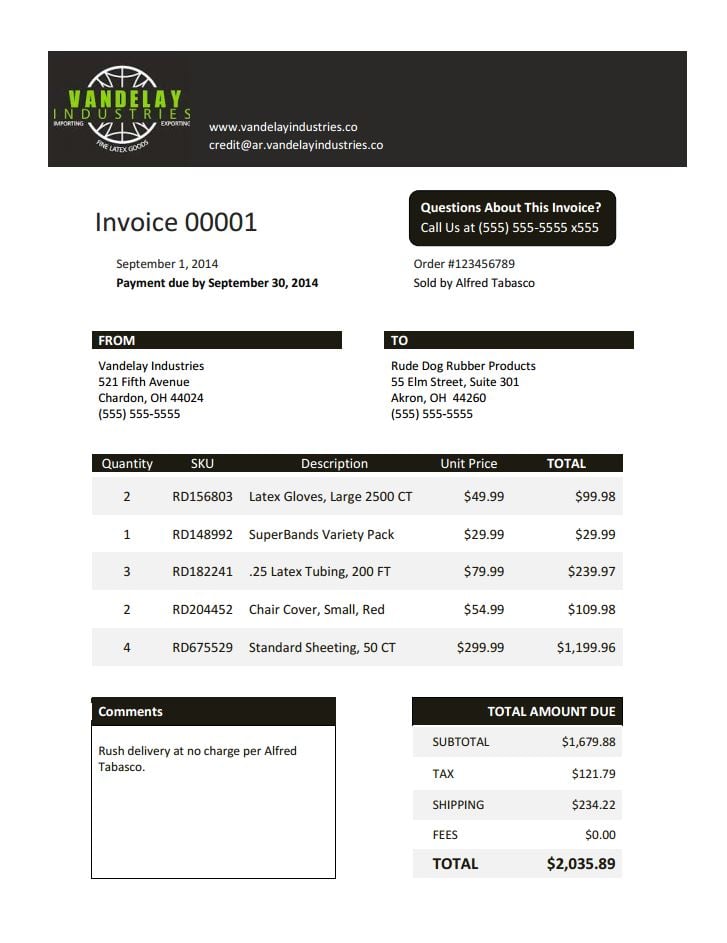 To ensure that you end up with the least amount of invoice disputes as possible, include a breakdown of services for the customer to review. Be sure that each product of service is line itemed with a cost. Be specific on each product or service instead of using general terms such as "Service Charge". Any missing, incorrect, or unclear information will simply mean you will wait longer for the customer to pay you.