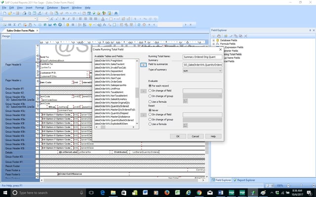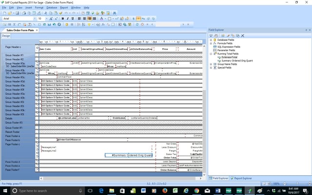 Question: Mike, we own Sage 100 (formerly MAS90) and use Crystal Reports. How can we do a summary calculation at the bottom to add up multiple lines on a Sales Order using Crystal Reports. We follow your Sage 100 Consultants Tip blogs and find your series of tips on Crystal Reports very useful!