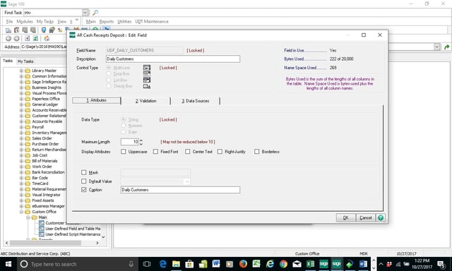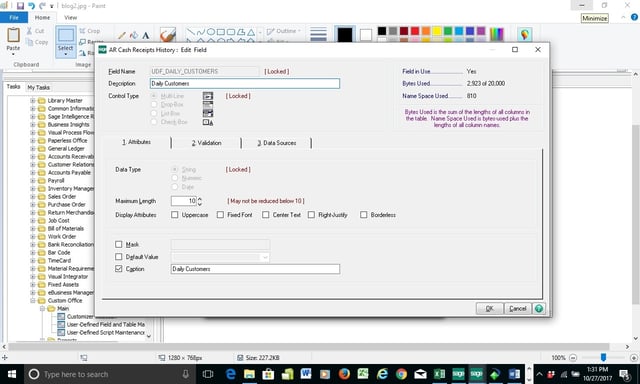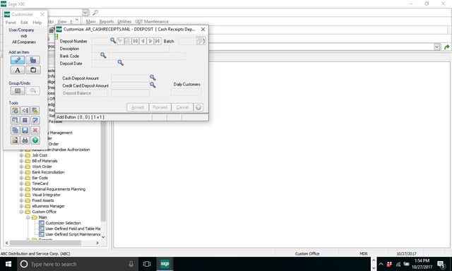 Question: Mike, we own Sage 100 (formerly MAS90) and we would like to know how to add a simple box to the Accounts Receivable Cash Receipts Entry screen. Is it possible to add a field to enter the number of customers that come through the door every day? We'd like to collect this data and build a report to show this information with different date ranges.
