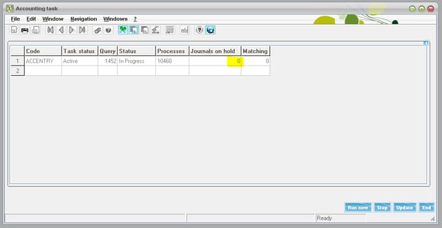 Any number of journals on hold will mean that they are not reflected in the G/L. To make it ‘0’, click the Run Now button, and after a few minutes, click Update to see that the ‘Journals on Hold’ turn to ‘0’.