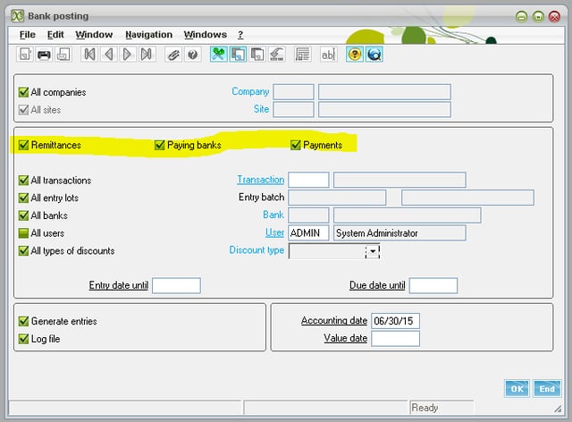 Open the Bank Posting function for bulk posting of unposted Payments/Receipts