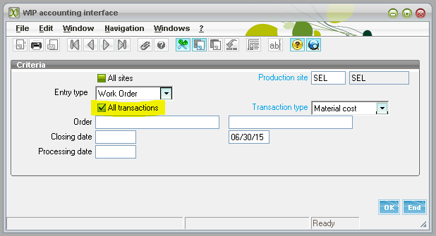 Open the WIP Accounting Interface to post all WIPs to the G/L. Ensure to select ‘All Transactions’ for posting of all transactions in terms of Costing.