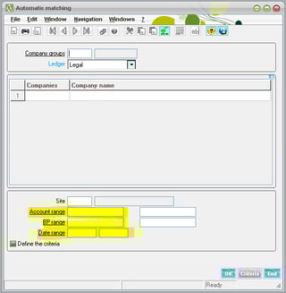 Open the Matching function that automatically matches credits and debits (eg. Payments and Invoices) of the same ‘exact values’.