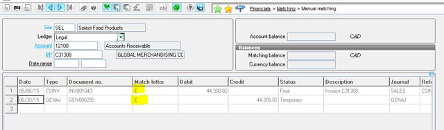 Lower case letters indicate transactions still have unapplied amounts to match.