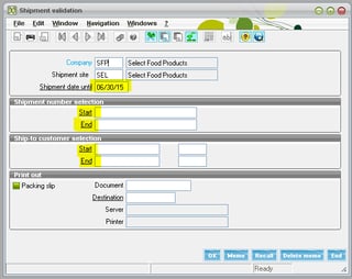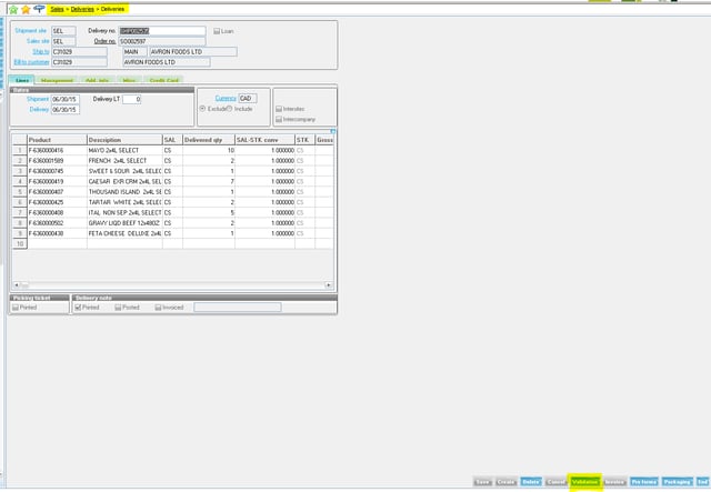 Open the Sales Delivery function. The user can check the records and validate the shipment, entry by entry.
