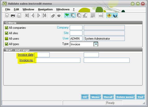 Open the Sales Invoice function. The user can check the records and post the invoice, entry by entry.