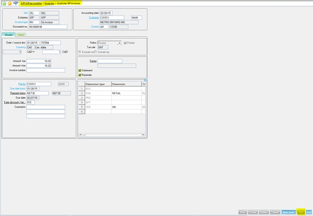 Open the Customer BP Invoice function. The user can check the records and Post the BP invoices, entry by entry.