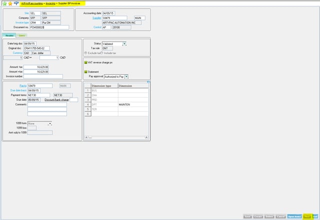 Open the Supplier BP Invoice function. The user can check the records and Post the BP invoices, entry by entry.
