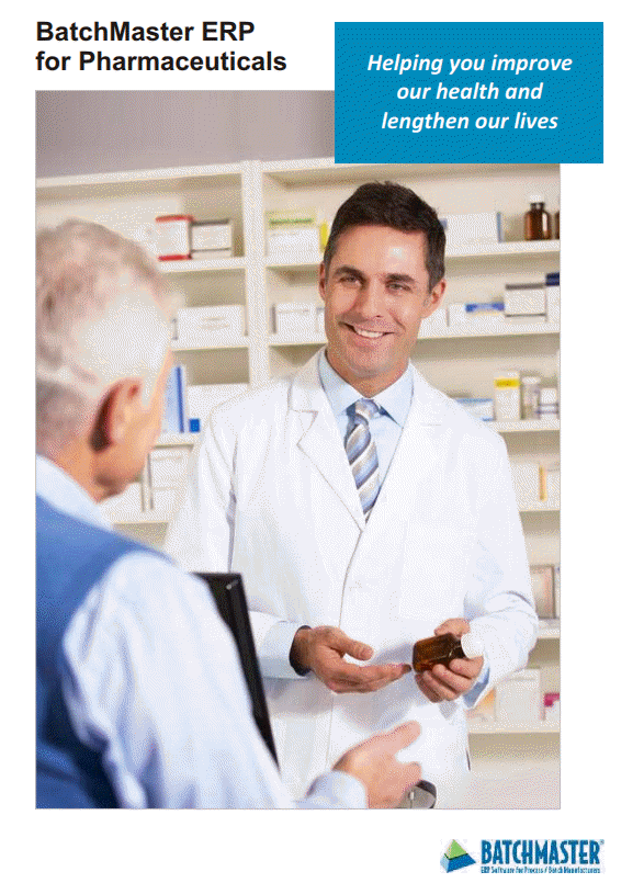 BatchMaster ERP software for pharmaceutical manufacturing allows pharmaceutical manufacturers to manage separate drug and packaging specifications, estimate ingredient and finished good costs using raw material and labor costs, adjust ingredient quantities to meet label claims, compare and analyze specifications, employ multilevel workflows to approve specifications and more...