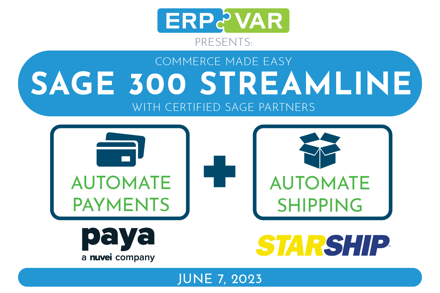 Join us and our friends at Paya and StarShip to learn how to automate payment processing and shipping with integrated payments and shipping for Sage 300.